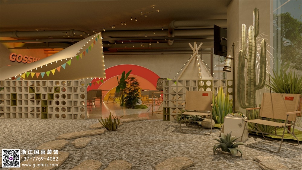 露營風燒烤餐廳裝修設計案例效果圖
