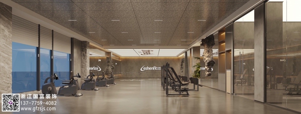 杭州水泥工業風健身房裝修設計效果圖